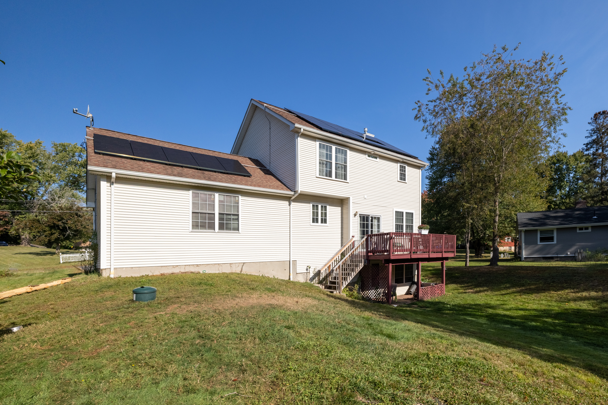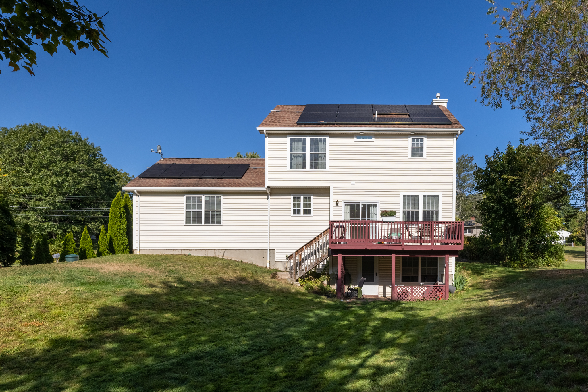 Welcome to this 3 bedroom, 2.5 bath colonial that offers comfort, efficiency, and convenience on a spacious 0.63-acre lot. The main level features an inviting layout with laundry for added ease, a centrally located fireplace in the living room, and direct access to the attached two-car garage. The kitchen and dining areas flow seamlessly, creating a functional space for everyday living and entertaining. Upstairs, you'll find three bedrooms and two full bathrooms, including a primary suite with its own private bath. The partially finished basement adds versatility with a recreational room-perfect for a playroom, home gym, or additional living space. Practical updates set this property apart, including paid-off solar panels that keep electric bills low and efficient, central air for comfort, plus central features like the two-car attached garage and generous outdoor space. Located in a desirable area of Vernon, this home combines privacy with convenience. Enjoy quick access to shopping, restaurants, and major highways, making commuting and daily errands simple. It is also located near the beautiful Hockanum River Linear Park, adding options for outdoor recreation and nature trails. This property offers the perfect balance of functionality, efficiency, and location. Don't miss the chance to make it your own!